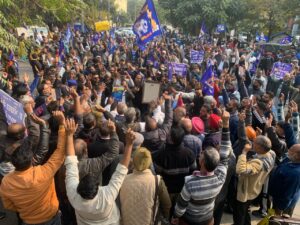 ਜਲੰਧਰ (ਜਸਪਾਲ ਕੈਂਥ)- ਕੇਂਦਰ ਸਰਕਾਰ ਵਿਚ ਗ੍ਰਹਿ ਮੰਤਰੀ ਤੇ ਭਾਜਪਾ ਦੇ ਆਗੂ ਅਮਿਤ ਸ਼ਾਹ ਵਲੋਂ ਸੰਸਦ ਵਿੱਚ ਬਾਬਾ ਸਾਹਿਬ ਡਾ ਭੀਮ ਰਾਓ ਅੰਬੇਦਕਰ ਖਿਲਾਫ ਕੀਤੀ ਗਈ ਅਪਮਾਨਜਨਕ ਟਿੱਪਣੀ ਦੇ ਵਿਰੋਧ ਵਿਚ ਬਹੁਜਨ ਸਮਾਜ ਪਾਰਟੀ ( ਬਸਪਾ) ਅੱਜ 24 ਦਸੰਬਰ ਨੂੰ ਦੇਸ਼ ਭਰ ਵਿੱਚ ਜਿਲ੍ਹਾ ਹੈਡ ਕੁਆਰਟਰ ਤੇ ਪ੍ਰਦਰਸ਼ਨ ਕੀਤੇ ਗਏ। ਪਾਰਟੀ ਮੁਖੀ ਭੈਣ ਕੁਮਾਰੀ ਮਾਇਆਵਤੀ ਵਲੋ ਦਿੱਤੇ ਇਸ ਦੇਸ਼ ਵਿਆਪੀ ਪ੍ਰਦਰਸ਼ਨਾਂ ਦੀ ਕਾਲ ਤਹਿਤ ਜਲ਼ੰਧਰ ਵਿਚ ਵੀ ਅਮਿਤ ਸ਼ਾਹ ਤੇ ਭਾਜਪਾ ਖਿਲਾਫ ਬਸਪਾ ਵਲੋਂ ਤਿੱਖਾ ਪ੍ਰਦਰਸ਼ਨ ਕੀਤਾ ਗਿਆ। ਜਲੰਧਰ ਵਿੱਚ ਬਸਪਾ ਦੇ ਇਸ ਪ੍ਰਦਰਸ਼ਨ ਦੀ ਅਗਵਾਈ ਬਸਪਾ ਦੇ ਸੂਬਾ ਪ੍ਰਧਾਨ ਡਾ ਅਵਤਾਰ ਸਿੰਘ ਕਰੀਮਪੁਰੀ ਨੇ ਕੀਤੀ। ਇਸ ਪ੍ਰਦਰਸ਼ਨ ਵਿਚ ਵੱਡੀ ਗਿਣਤੀ ਵਿਚ ਬਸਪਾ ਵਰਕਰ ਡਾ ਅਵਤਾਰ ਸਿੰਘ ਕਰੀਮਪੁਰੀ ਦੀ ਅਗਵਾਈ ਵਿਚ ਪਹਿਲਾਂ ਬੀਐਸਐਫ ਚੌਕ ਲਾਡੋਵਾਲੀ ਰੋਡ ਇਕੱਠੇ ਹੋਏ ਤੇ ਮਾਰਚ ਦੇ ਰੂਪ ਵਿਚ ਅਮਿਤ ਸ਼ਾਹ ਤੇ ਭਾਜਪਾ ਖਿਲਾਫ ਪ੍ਰਦਰਸ਼ਨ ਕਰਦੇ ਹੋਏ ਡੀਸੀ ਦਫ਼ਤਰ ਜਲੰਧਰ ਪਹੁੰਚੇ ਤੇ ਉਥੇ ਧਰਨਾ ਵੀ ਦਿੱਤਾ। ਮਾਰਚ ਦੌਰਾਨ ਬਸਪਾ ਵਰਕਰਾਂ ਨੇ ਅਮਿਤ ਸ਼ਾਹ ਤੇ ਭਾਜਪਾ ਖਿਲਾਫ ਤਿੱਖੀ ਰੋਹ ਭਰਪੂਰ ਤਿੱਖੀ ਨਾਅਰੇਬਾਜ਼ੀ ਕੀਤੀ ਤੇ ਕਿਹਾ ਕਿ ਬਾਬਾ ਸਾਹਬ ਡਾ ਭੀਮ ਰਾਓ ਅੰਬੇਡਕਰ ਖਿਲਾਫ ਕੀਤੀ ਟਿੱਪਣੀ ਲਈ ਉਹ ਮਾਫੀ ਮੰਗਣ। ਮਾਰਚ ਦੌਰਾਨ ਬਸਪਾ ਵਰਕਰਾਂ ਨੇ ਹੱਥ ਪਾਰਟੀ ਦੇ ਨੀਲੇ ਝੰਡੇ ਤੇ ਤਖਤੀਆਂ ਫੜ੍ਹੀਆਂ ਹੋਈਆਂ ਸਨ, ਜਿੰਨਾ ਵਿਚ ਜਿਨ੍ਹਾਂ ਵਿੱਚ ਲਿਖਿਆ ਹੋਇਆ ਸੀ ਕਿ ਭਾਜਪਾ ਬਿਨਾਂ ਸ਼ਰਤ ਮਾਫੀ ਮੰਗੇ। ਇਸ ਮੌਕੇ ਤੇ ਪ੍ਰਦਰਸ਼ਨ ਨੂੰ ਸੰਬੋਧਨ ਕਰਦਿਆਂ ਬਸਪਾ ਸੂਬਾ ਪ੍ਰਧਾਨ ਡਾ ਅਵਤਾਰ ਸਿੰਘ ਕਰੀਮਪੁਰੀ ਨੇ ਕਿਹਾ ਕਿ ਅਮਿਤ ਸ਼ਾਹ ਸ਼ਾਹ ਨੇ ਬਾਬਾ ਸਾਹਿਬ ਖਿਲਾਫ ਅਪਮਾਨਜਨਕ ਟਿੱਪਣੀ ਕਰਕੇ ਬਾਬਾ ਸਾਹਿਬ ਦੇ ਕਰੋੜਾਂ ਪੈਰੋਕਾਰਾਂ ਦੀਆਂ ਭਾਵਨਾਵਾਂ ਨੂੰ ਠੇਸ ਪਹੁੰਚਾਈ ਹੈ। ਉਨ੍ਹਾ ਕਿਹਾ ਕਿ ਬਾਬਾ ਸਾਹਿਉਨ੍ਹਾਂ ਦੀ ਇਸ ਬਾਬਾ ਸਾਹਿਬ ਦੇ ਪੈਰੋਕਾਰਾਂ ਵੱਲੋਂ ਉਨ੍ਹਾਂ ਦੀ ਇਸ ਟਿੱਪਣੀ ਤੇ ਵਿਰੋਧ ਜਤਾਉਣ ਤੇ ਨਾ ਤਾਂ ਉਨ੍ਹਾਂ ਇਹ ਸ਼ਬਦ ਵਾਪਸ ਲਏ ਤੇ ਨਾ ਹੀ ਇਨ੍ਹਾਂ ਸ਼ਬਦਾ ਲਈ ਬਾਬਾ ਸਾਹਿਬ ਦੇ ਪੈਰੋਕਾਰਾਂ ਤੋਂ ਮਾਫੀ ਮੰਗੀ। ਇਸ ਕਰਕੇ ਬਸਪਾ ਮੁਖੀ ਭੈਣ ਕੁਮਾਰੀ ਮਾਇਆਵਤੀ ਵੱਲੋਂ ਇਸਦੇ ਖਿਲਾਫ ਦੇਸ਼ ਵਿਆਪੀ ਪ੍ਰਦਰਸ਼ਨਾਂ ਦੀ ਕਾਲ ਦਿੱਤੀ। ਬਸਪਾ ਪ੍ਰਧਾਨ ਨੇ ਕਿਹਾ ਕਿ ਅੱਜ ਕਸ਼ਮੀਰ ਤੋਂ ਕੰਨਿਆ ਕੁਮਾਰੀ ਤੱਕ ਪ੍ਰਦਰਸ਼ਨ ਕੀਤੇ ਜਾ ਰਹੇ ਹਨ ਤੇ ਇਹ ਲਗਾਤਾਰ ਚਲਦੇ ਰਹਿਣਗੇ ਜਦ ਤੱਕ ਇਹ ਸ਼ਬਦ ਵਾਪਸ ਨਹੀਂ ਲਏ ਜਾਂਦੇ ਤੇ ਇਸ ਤੇ ਮਾਫੀ ਨਹੀਂ ਮੰਗੀ ਜਾਂਦੀ। ਉਨ੍ਹਾ ਕਿਹਾ ਕਿ ਬਾਬਾ ਸਾਹਿਬ ਦੇਸ਼ ਦੇ ਸੰਵਿਧਾਨ ਦੇ ਨਿਰਮਾਤਾ ਹਨ ਤੇ ਉਨ੍ਹਾ ਦੇ ਸੰਘਰਸ਼ ਕਰਕੇ ਹੀ ਸਦੀਆਂ ਤੋਂ ਸ਼ੋਸ਼ਿਤ ਦਲਿਤ ਪਛੜੇ ਵਰਗਾਂ ਤੇ ਔਰਤਾਂ ਨੂੰ ਬਰਾਬਰੀ ਦੇ ਹੱਕ ਮਿਲੇ ਹਨ। ਉਨ੍ਹਾ ਕਿਹਾ ਕਿ ਬਾਬਾ ਸਾਹਿਬ ਜਿੰਨਾ ਦੇ ਸੰਘਰਸ਼ ਕਰਕੇ ਦਲਿਤਾਂ ਪੱਛੜੇ ਵਰਗਾਂ ਨੂੰ ਚੰਗੀ ਜਿੰਦਗੀ ਜਿਊਣ ਦਾ ਮੌਕਾ ਮਿਲਿਆ ਉਹ ਦਲਿਤ ਪੱਛੜੇ ਵਰਗਾਂ ਲਈ ਭਗਵਾਨ ਹੀ ਹਨ। ਇਸ ਕਰਕੇ ਅਮਿਤ ਸ਼ਾਹ ਦਾ ਸੰਸਦ ਵਿਚ ਇਹ ਕਹਿਣਾ ਕਿ ਅੰਬੇਡਕਰ ਅੰਬੇਡਕਰ ਅੰਬੇਡਕਰ ਲਗਾ ਰੱਖਿਆ ਤੇ ਜੇਕਰ ਇੰਨਾ ਨਾਂ ਭਗਵਾਨ ਦਾ ਲੈਂਦੇ ਤਾਂ ਸਵਰਗ ਮਿਲ ਜਾਂਦਾ ਤਾਂ ਅਸੀਂ ਇਹ ਕਹਿਣਾ ਚਾਹੁੰਦੇ ਹਾਂ ਕਿ ਜਦ ਜਿੰਦਗੀ ਹੀ ਬਾਬਾ ਸਾਹਿਬ ਕਰਕੇ ਮਿਲੀ ਹੈ ਤਾਂ ਫੇਰ ਦਲਿਤ ਪੱਛੜੇ ਵਰਗਾਂ ਨੇ ਅੰਬੇਡਕਰ ਅੰਬੇਡਕਰ ਅੰਬੇਡਕਰ ਹੀ ਕਹਿਣਾ ਹੈ ਤੇ ਕਿਸੇ ਨੂੰ ਇਸ ਤੇ ਕੀ ਇਤਰਾਜ ਹੋਣਾ ਚਾਹੀਦਾ ਹੈ। ਉਨ੍ਹਾ ਕਿਹਾ ਕਿ ਇ